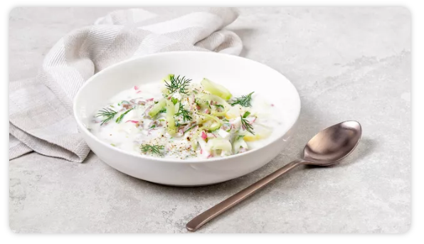 Окрошка на мацони готовится на основе кисломолочного напитка, который обладает освежающим вкусом и легкой кислинкой. Она отличается от привычной многим окрошки на кефире тем, что она более густая. Вкус окрошки на мацони получается более легким, освежающим и кислым, благодаря особенностям этого традиционного грузинского напитка. Окрошка на кефире же получается более густой и насыщенной, с более мягкой кислинкой и нотками кефира. ПРОДУКТЫ ДЛЯ РЕЦЕПТА (на 1 порцию) ПОШАГОВЫЙ ФОТОРЕЦЕПТ ПОДГОТОВИТЬСЯ Помойте картофель, оставьте в мундире. Вымойте огурец и редис. Отварите яйцо вкрутую. Промойте лук. Шаг 1 Картофель отварите до готовности, остудите и очистите. Нарежьте мелким кубиком. Так же нарежьте язык. Огурец и редис натрите на крупной терке. Шаг 2 Яйцо разделите на белок и желток. Оставьте только белок, желток не понадобится. Белок нарежьте мелким кубиком. Измельчите лук. Шаг 3 Все ингредиенты соедините в тарелке. Мацони разведите газировкой, посолите. Залейте этой смесью окрошку в тар
