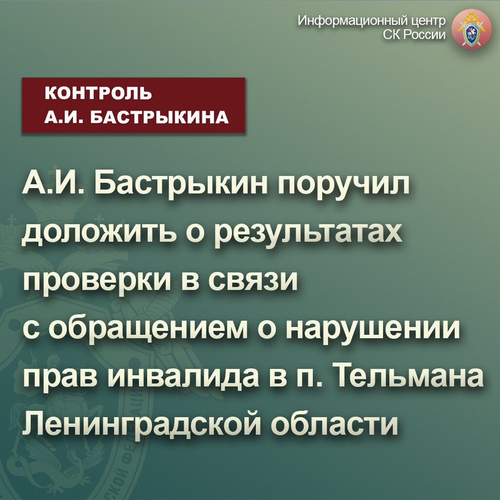 А.И. Бастрыкин поручил доложить о результатах проверки в связи с обращением о нарушении прав инвалида в п. Тельмана Ленинградской области