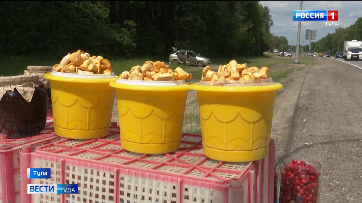 Тульскую область, к сожалению, величают малолесной. У соседей калужан зеленых чащ вчетверо больше нашего. Так что, конкуренция среди собирателей лесных даров, ощутима. Но грибник со стажем, как Раиса, и в трех соснах отыщет урожай. Уж, тем более, там, где тропы годами исхожены, и все грибницы на пересчёт. Для того, чтобы не выходить из леса с пустой корзиной важно знать, когда и на какие виды грибов открывается охотсезон. Чемпион по длительности сбора любимая многими за отсутствие червей лисичка. Её рост растягивается практически на всё лето. А вот благородный белый только пошёл. Раиса Антонова, грибник: Смотрите на поле, если колосится пшеница, колос пускает, в это время должны быть белые. Со временем определились, запоминаем растительность, которая даёт подсказку на наличие грибов. Мы пробирались по излюбленной траве лисичек. Первые лисички растут по краю. После дождичка в четверг! – крылатая фраза не о грибах, но чудесным образом раскрывающая главное правило их сбора! – успеть до ма