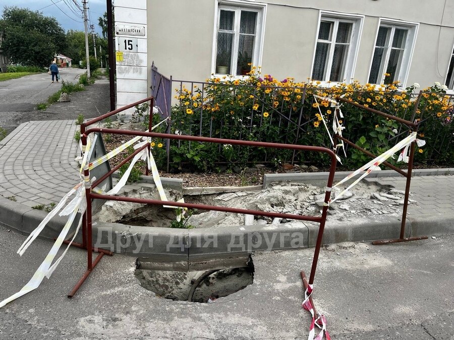 16 июня в Ахтырском переулке в центральной части Курска женщина провалилась в яму с горячей водой. Ей помогли выбраться прохожие. Но яма осталась на месте, тротуар и асфальт в этом месте продолжают обрушаться. Тогда выяснилось, что повреждение появилось в ходе гидравлических испытаний тепловых сетей ТЭЦ СЗР. «Сроки проведения ремонтных работ будут определены по результатам обследования», – сообщили в городском комитете ЖКХ. Опасный участок огородили, но никаких работ там сейчас не ведется. Яма ширится. Если месяц назад провалился лишь участок тротуара, то сейчас рушится и проезжая часть. При этом дорога не перекрыта для автомобилей. Антон ФИЛИППОВ, фото Юлии Курасовой Постоянный адрес новости на сайте «Друг для друга» ~ https://dddkursk.ru/lenta/2023/07/12/099540/. Новости Курска за ~ 12 июля ~ июль 2023 года.