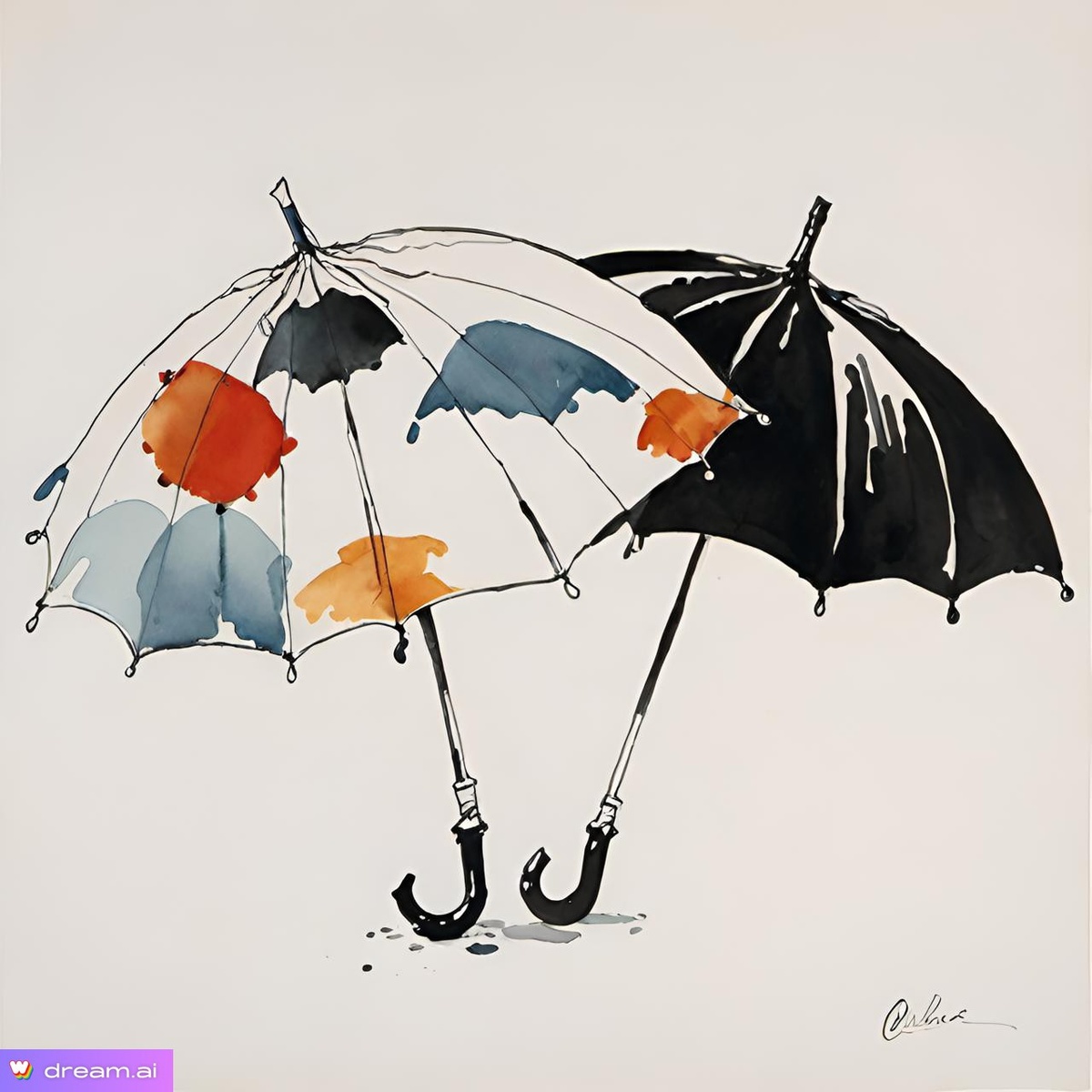 Я только вздохнул. И посмотрел на свою кровать. Там лежали два зонта: чёрный, как ночь, и белый, украшенный множеством мелких цветных фигурок. Мой зонт, тоже чёрный, прятался под кроватью - только ручка чуток и торчала. Было полное ощущение, что он смутился этаких красавцев, и сбежал. И я его понимал. Я бы тоже сбежал... да мне было не куда.