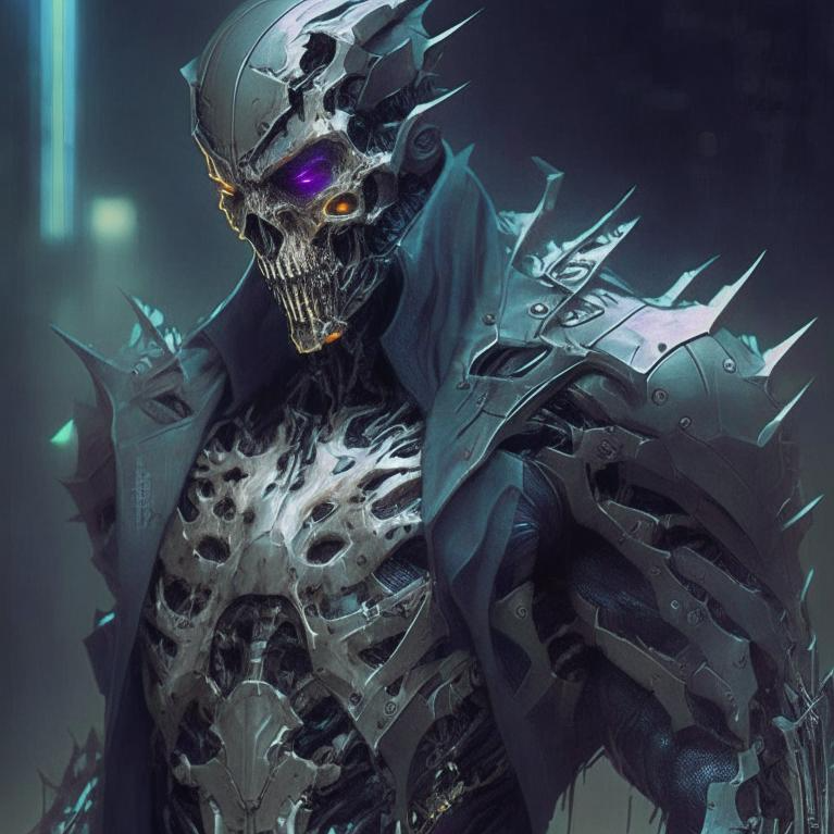 Адамантиум - супер антизлодей, обладающий внушительным и мощным внешним видом. Он облачен в костюм, изготовленный из особого биоморфного материала, способного менять свою форму и текстуру в соответствии с потребностями героя. Костюм Адамантиума имеет глубокий черный цвет с металлическим отливом, что придает ему суровость и силу. Рельефные линии и панели на костюме создают впечатление технологичности и силы. Он также имеет множество деталей в виде защитных пластин и эргономичных компонентов, которые подчеркивают его защитный характер и готовность к битве. Маска Адамантиума выполнена в виде зловещего черепа, символизируя его противостояние злу. Глазные выемки маски оснащены технологическими сенсорами, обеспечивающими расширенное видение и анализ окружающей обстановки. Его физическая форма гармонична и мускулиста, отражая его силу и мощь. Адамантиум выглядит высоким и грациозным, с пропорциональными конечностями и величественной осанкой. Он движется с уверенностью и легкостью, отражая сво