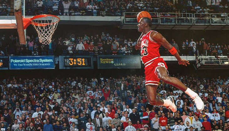 Полет с линии штрафных на конкурсе МВЗ-1988. Слезы после первого титула. 1991 Объятия отца. Летающий Майкл Джордан и восхищенные деды. Против лучшего друга Чарльза Баркли, напрасно посягнувшего на MVP в 1993-м. Поддержка после «гриппозной игры». Вечная ирония между игроком и тренером. Взлет Джордана на Олимпиаде-84. Данки с конкурсов под разными ракурсами. Ощущение небесной походки. Легендарный язык. Вся сцена принадлежит одному. Яростный Джордан против «Пистонс». Бросок в последней финальной серии. Попадание под сирену в 5-м матче серии с «Кливлендом». 1989 Защита в исполнении Джордана не менее эффектна. Фото, закрепившее ощущение полета. Бог под личиной Джордана против «Бостона»-84. Данк с сопротивлением. Баскетбол как искусство. Чувак?! Победный бросок в Северной Каролине, сделавший Джордана знаменитым. Долорес Джордан и ее сын, который не так уж плох. Фирменная поза с руками на коленях. 4-й приз MVP, полученный в плей-офф-1996, после возвращения в спорт. Джордан – лучший среди лучш