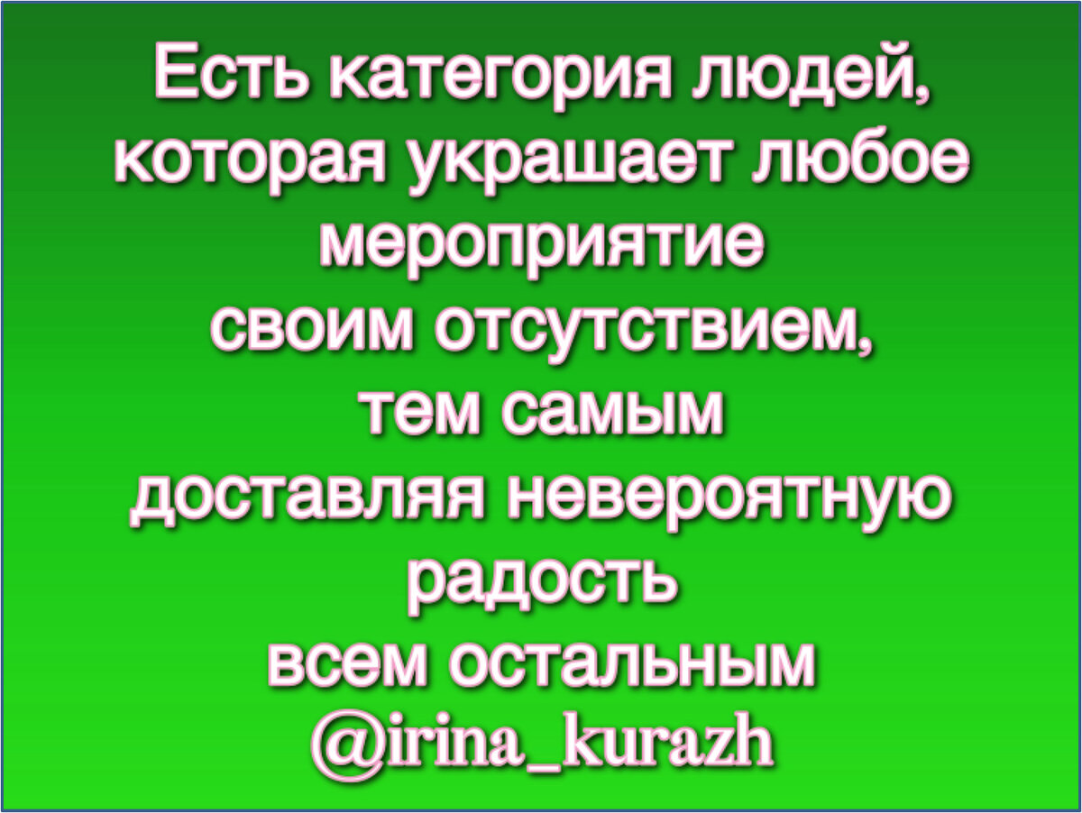 Не задавайтесь вопросом, почему ваш номер отправили в "черный список" и больше не приглашают или не приходят на ваши мероприятия. Переживать из-за этого - не ваш уровень! К тому же, "ЭТИ особи" - точно не достойны вашего внимания. В конце концов, есть еще много тех, над кем можно и нужно отрабатывать свои техники инфантильно-нарциссического, сверх "эффективного" общения.