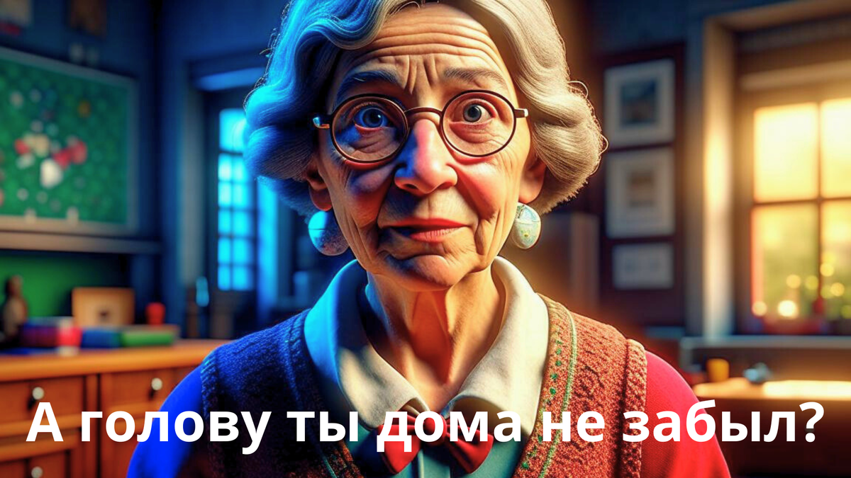 В одном маленьком провинциальном городке жила-была учительница Надежда Фёдоровна. Она была строгой, но справедливой и всегда старалась внушить своим ученикам самые важные уроки жизни. Однажды утром, как обычно, ученики собрались у Надежды Фёдоровны в классе. Они были ребятами разных характеров, но все они были любопытными и умными. Надежда Фёдоровна всегда поощряла в своих учениках интерес к знаниям и старалась поддерживать их во время уроков. В этот день урок начался как обычно, но в середине, когда Надежда Фёдоровна объясняла материал, она неожиданно остановилась и обратилась к одному из учеников с вопросом: – А голову ты дома не забыл, Андрей? Андрей был несколько растерян, так как никогда раньше его не спрашивали о чем-то подобном. Взгляд Надежды Фёдоровны был строгим. Андрей подумал, что учительница, возможно, забыла что-то важное, и попытался вспомнить, что именно. Андрей взглянул на свою рюкзак и быстро просканировал свой ум. Он ответил: – Нет, Надежда Фёдоровна, голову я