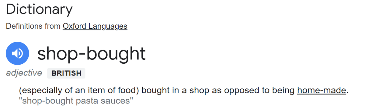 - покупной, купленный в магазине - store-bought в американском, shop-bought в британском