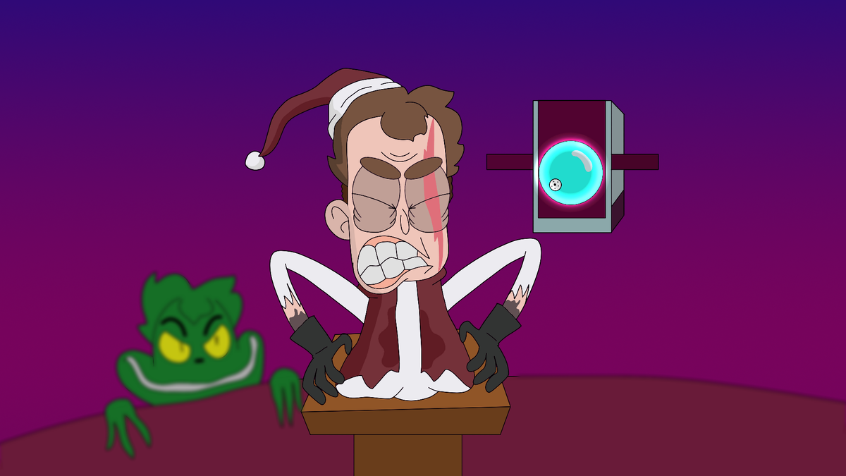Открывается портал на заснеженную планету, куда попадают Боб с Томом. "Добро пожаловать во вселенную R-1225, где каждый день Рождество! Да, не спрашивай, почему только оно. Наверное, это какая-то... Временная петля, что ли... Что-то знакомое..." Боб тут же достаёт петарды. "Нет, Боб, мы здесь не праздновать собираемся. Здесь находится Боб, который просто ненавидит Рождество. Я с подобными индивидами уже сталкивался, но это особый случай. Он планирует поднести планету ближе к Солнцу, чтобы всегда было жарко!" Боб начинает дрожать от холода. "Не представляю, как бы жители планеты себя почувствовали, когда температура резко поднимется от -70 до +70. Или даже больше. Он явно не знает, чем это может закончиться. Глобальные катаклизмы, засуха, недостаток пропитания... Они буквально зажарятся в таком пекле!" Мимо них как раз пробегает тот самый Боб, злобно смеясь. "Вот он, Боб! За ним!" Боб тут же начинает за ним гнаться, доставая петарду и направляя на него. "Да потом повеселишься,
