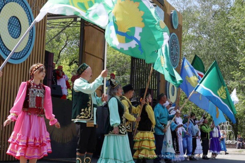 Еще можно купить мед, тюбетейку и сыр из монастырского хозяйства. Обе аллеи по бокам от сцены заняты торговыми рядами. Где праздник, там и продавцы всего на свете. Прямо восточный базар в миниатюре: шумно, весело, народа — тьма. Сладкоежкам предлагают сахарную вату, попкорн, чак-чак, щербет, авторское варенье и десяток видов халвы: есть кунжутная, шоколадная, с тыквенными семечками, грецким орехом, арахисом. Пасека Алексея Поспелова производит самый вкусный в мире мед (по версии Алексея Поспелова). Для любителей чего посущественнее — колбаса, сыр из монастырского хозяйства в Далматово. Целая очередь выстроилась за пловом и шашлыком. Готовят прямо на месте, все горячее. Вкуснотища, но очень калорийная. Если есть такое каждый день, с подтянутой фигурой придется попрощаться. Хочешь сувенир — купи тюбетейку, кепку с вышивкой или украшение из бисера. Подростки скупают значки с прикольными надписями: «Я всегда зеваю, когда мне интересно», «Каждый по-своему прав, а по-моему нет», «Дома посижу
