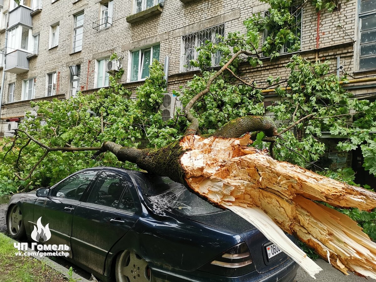 1 июля примерно в 16:45 из-за сильных порывы ветра отломилась огромная ветвь клёна и упала на “Мерседес”, сообщает “ЧП Гомель”.