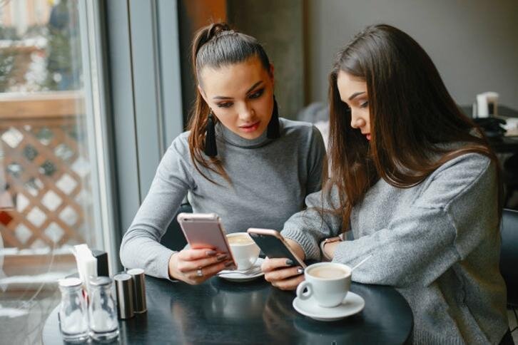 Девушки зашли в кафе, заказали кофе и десерты.