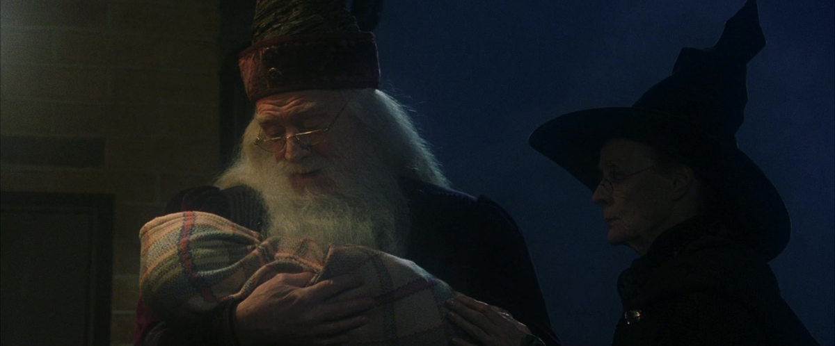 Одной поздней ночью директор школы волшебства Хогвартс Альбус Дамблдор, его заместитель Минерва и лесник Хагрид оставляют маленького Гарри у дяди с тетей - единственных его родственников, потому что до определённого возраста он не должен был знать о мире магии и волшебства.