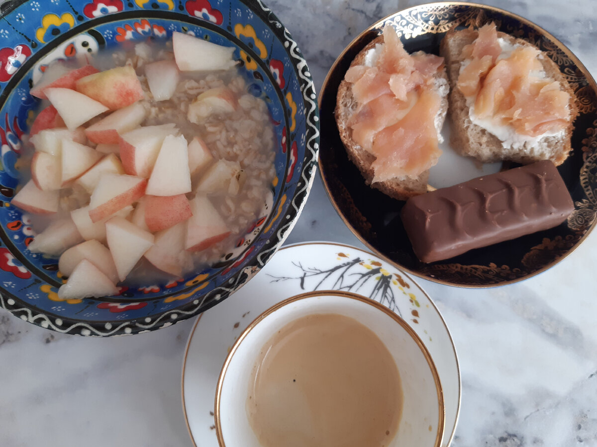 В июле продолжаем питаться экономно и вкусно на небольшую сумму. О запасах на начало месяца и расчете суммы на питание можно узнать ЗДЕСЬ Покупка продуктов 1 -Tasty Coffee, Вкусвилл, Светофор, Дикси, пекарня, рынок Покупка продуктов 2 - Озон, Дикси, Пятерочка, Вкусвилл, Светофор, рынок Покупка продуктов 3 - Вкусвилл, Аленка, Смарт, рынок Покупка продуктов 4 -МЕТРО, Вкусвилл, Смарт, Светофор, рынок Все рецепты можно найти в КАТАЛОГЕ РЕЦЕПТОВ К завтраку сварила овсяную кашу, в тарелки порезала нектарины. Кофе, бутерброды с красной рыбой. Хлеб домашний на трех видах муки. На обед оставались еще по порции супа гречневого и хашламы с курицей. Стала лепить вареники с картошкой и шкварками. Вкусно, но долго. Времени уже особо не было развлекаться с лепкой вареников, закатала начинку в рулеты и сделала штрумбы с картошкой - обжарила и потушила под крышкой. Вкус тот же, делается в 10 раз быстрее. 😄 Получилась целая сковорода. Поели на обед, и потом ходили таскали. Мне достался уже один после