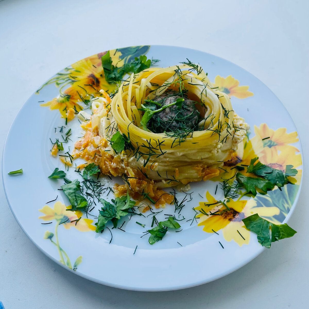 Гнезда из макарон - это очень вкусное блюдо, время готовки примерно 45 минут. Быстрый и вкусный вариант обеда или ужина, которым с легкостью можно накормить всю семью. Блюдо получилось очень вкусным и сытным. Ингредиенты: Приготовление: 1. Фарш солим, перчим или добавляем другие специи по вкусу. Перемешиваем. 2. Лук очищаем и мелко нарезаем. Морковь очищаем и натираем на крупной терке (у меня морковь замороженная). На разогретую сковороду наливаем растительное масло и немного ужариваем. 3. Начиняем макароны фаршем. 4. Делаем соус, берем сметану и добавляем соль, перец и заливаем горячей водой. 5. Соус добавляем к овощам в сковороду. 6. Выкладываем макароны-гнезда в сковороду, добавляем немного воды (примерно что бы "гнезда" были до середины). Тушим под крышкой примерно 20 минут. 7. Макароны - гнезда с фаршем подаем с рубленной зеленью. Приятного аппетита!