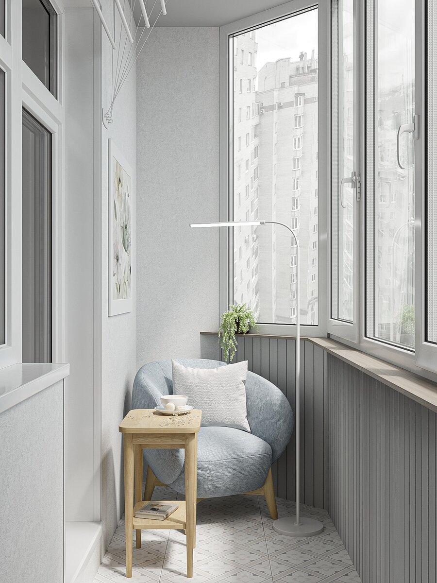 Совсем небольшой, но очень милый балкончик рядом со спальней. Моя задача, как дизайнера, заключалась в том, чтобы создать светлое пространство только для отдыха, возможно, чтения книг. Вам понравился балкончик? Если да, поставьте, пожалуйста, лайк! Мне будет приятно!