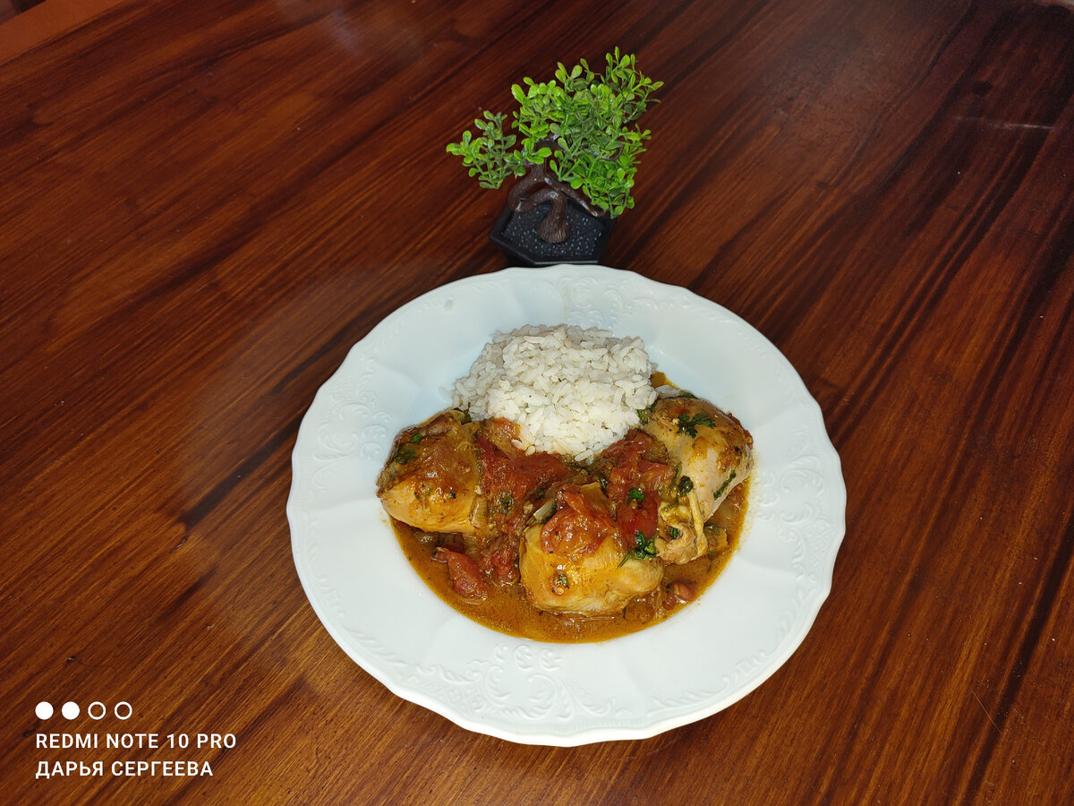 Тушим на медленном огне без крышки около 30 минут. Курица станет очень мягкой, а лишняя жидкость от помидоров испарится