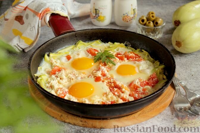 Яичница с кабачками, творогом и помидорами. Яичница-болтунья с грибами, помидорами, сладким перцем и луком. Шакшука с кабачками. Яичница-болтунья с зелёным горошком. Яичница-болтунья с грибами, помидорами, сладким перцем и луком – идеальный рецепт для любителей быстро и вкусно позавтракать. Получается очень гармонично – яйца отлично сочетаются с сочными овощами и грибами. Отличный вариант популярного ближневосточного блюда – шакшука с кабачками.Классическая шакшука – яичница с помидорами – удачно дополняется кабачками. Яйца, приготовленные в смеси тушёных овощей, – простое и невероятно вкусное блюдо. Отличное начало дня или сытный перекус – яичница-болтунья с зелёным горошком.Приготовить такой завтрак проще простого и много времени не отнимет. Горошек можно использовать любой, даже консервированный. Необычная яичница с кабачками, творогом и помидорами готовится без единой капли масла! Эта глазунья своим оригинальным способом приготовления похожа на шакшуку. Яичница получается сочной,
