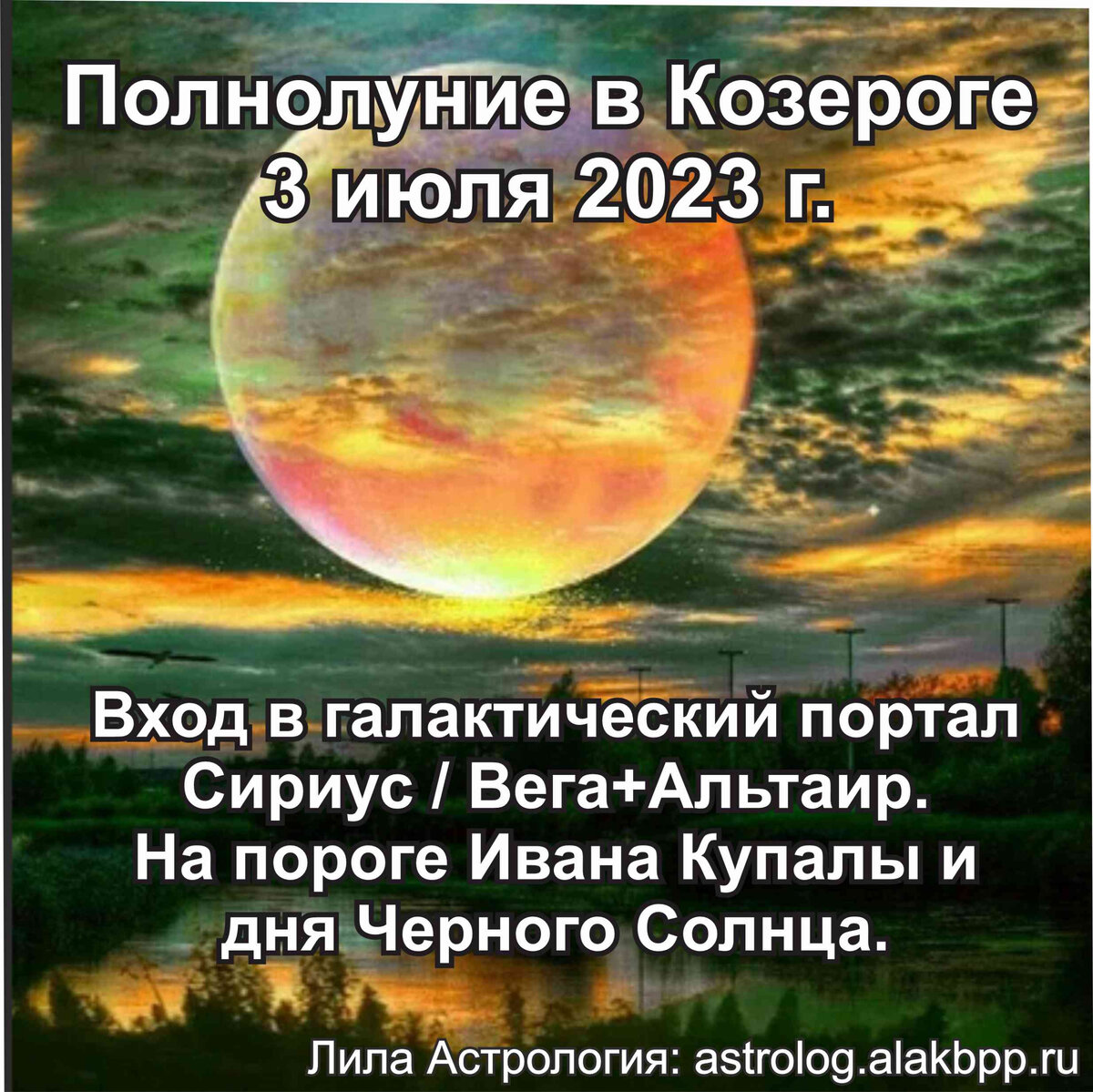 Полнолуние 3 июля 2023 года в Козероге. Вход в галактический портал Сириус / Вега+Альтаир. На пороге Ивана Купалы и дня Черного Солнца.