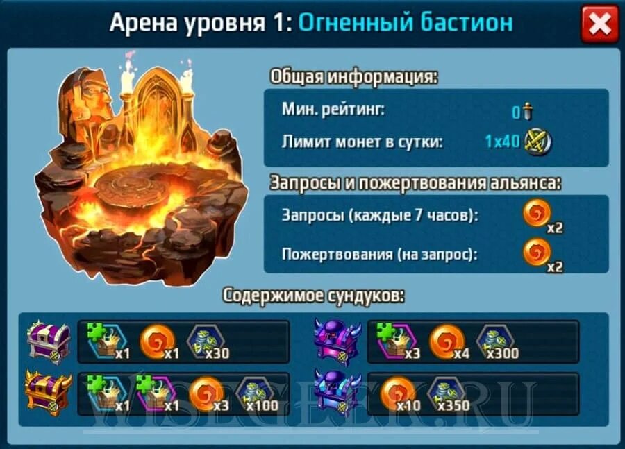 Суть игры - подобрать команду и менять ее с новыми уровнями Арены, выйти в лидеры и получать приятные ощущения от процесса победы, от составления новых команд. Прокачка у всех героев одна, но вот как игрок составит отряд, от этого и будет зависит исход каждой битвы.