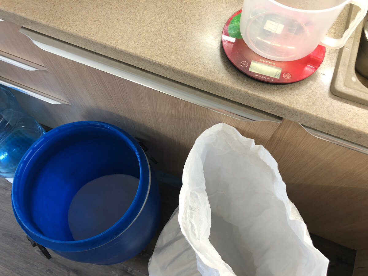 Я конечно не Минздрав, но предупреждаю: Чрезмерное употребление алкоголя вредит Вашему здоровью. 18+ Как известно экономика должна быть экономной, хотя с другой стороны кроилово ведёт к попадалову. Так что надо найти золотую середину, иногда порадовать свою внутреннюю земноводную, но при этом бдить за качество. К чему я это всё... к тому, что на барде от ромовой браги можно вполне себе поставить сахар и получить достаточно неплохой продукт. По личным ощущениям не хуже магазинных непонятных ромов ценовой категории 500 рублей. Такими сейчас завалены все пятёрочки и магниты. Брагу "первичного рома" я ставил на 7-ми килограммах мелассы + 3-х килограммах сахара. Поэтому отмеряя сахар из мешка, нетривиальным кстати способом с помощью кухонных весов, кувшина и калькулятора. Я остановился на такой цифре. Не стал я жадничать, опять же у меня будут хвосты от дистилляции рома (того что я первого ставил, первичного так сказать), которые и закольцую сюда. Так получилось что у меня осталось достаточ