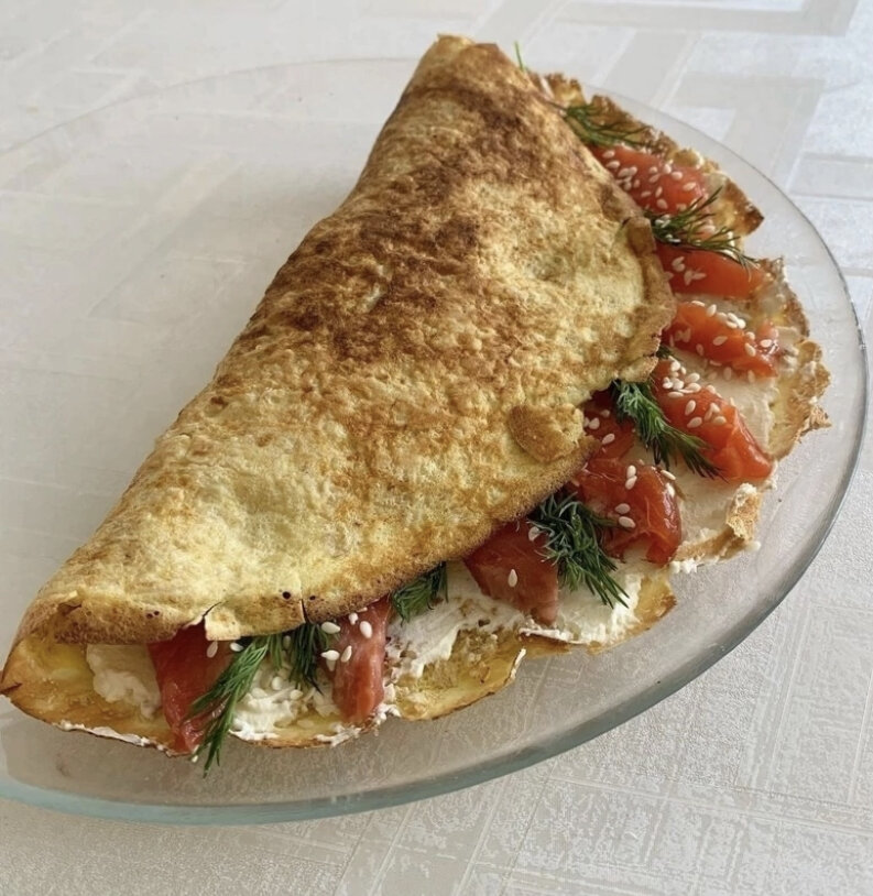 Ингредиенты: Хлопья овсяные быстрой варки 3 ст.л. Яйцо 1 шт Молоко 30 мл Начинка любая Приготовление: Яйцо смешать с молоком, всыпать хлопья, перемешать, жарить смесь на антипригарной сковородке под закрытой крышкой, или на обычной с добавлением капли масла, с обоих сторон. ⠀ Начинка у блинчика может любой: - творожный сыр, семга, зелень - творожный сыр, ветчина, твёрдый сыр -мягкий творог, мёд, любые фрукты или ягоды, орехи - арахисовая паста, банан - нутелла