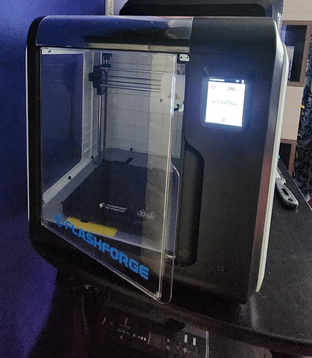Данный агрегат был заказан из Китая, в отличие от его старшего предшественника. Картонная коробка, внутри пенопластовая коробка. В целом все так же, как и на 4м. Только размеры гораздо меньше. Рабочая область у данного 3д принтера 15 на 15 на 15 см. В целом это не мало, хоть и не много. Но реально большие модели вряд ли вы будете печатать, очень долго и очень много пластика на это уходит, "внутренняя жаба" начинает побеждать. В основном большие модели делают сборными, чтобы можно было цвета сочетать, чтобы можно большие модели отпечатать на маленьких принтерах. Выглядит 3д принтер так же великолепно как и 4й. Аккуратный, все спрятано, закрыто и компактно. Экструдер со съемным соплом, но в комплекте запасного сопла нету. Платформа тут не съемная, стекло. Первый месяц я печатала без всяких клеев и отковыривала поделки шпателем, но потом видимо износилась поверхность (не визуально) и модели по краям стали отходить и загибаться углы. Поскольку клей был прикуплен давно, клей на платформу и