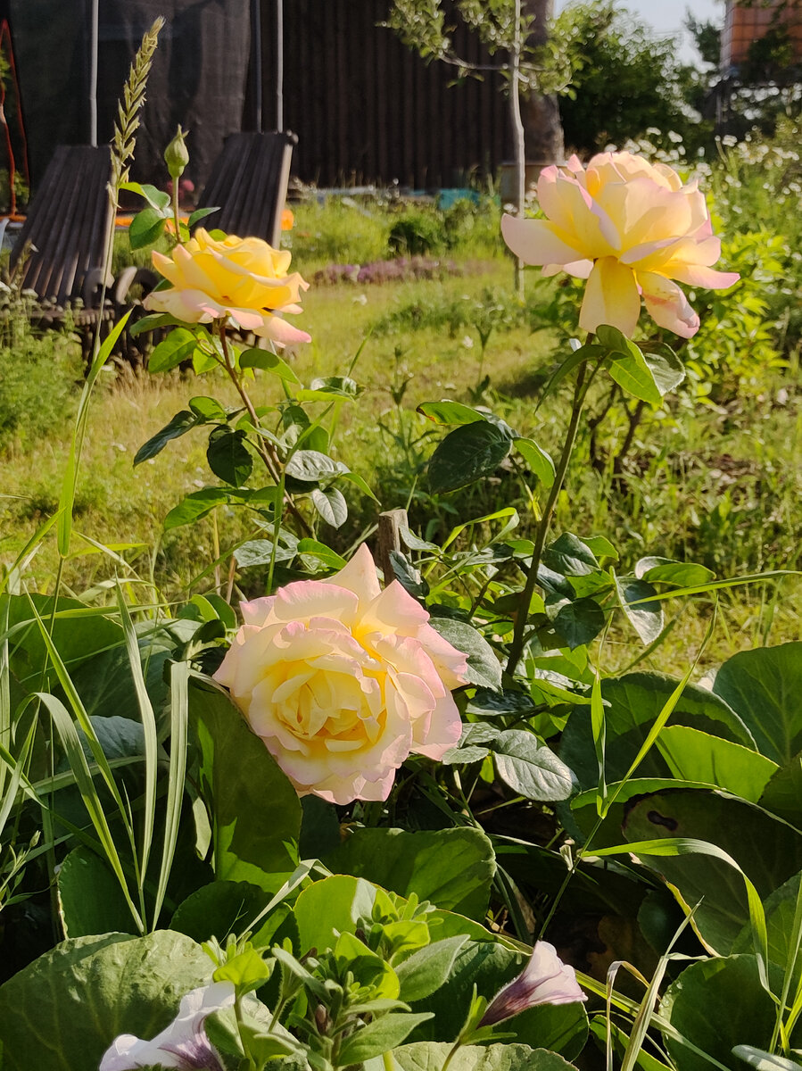 Роза Глория Дей. Чайно-гибридная. Ароматная. Очень крупная. Цветок диаметром более 15 сантиметров. Посажена у нас в 2022 году. Зимовала под лутрасилом, отлично вышла из зимовки. Немного пострадала от заморозков (были до середины июня), в средине июня были обрезаны слабые и подмерзшие побеги. Прекрасно восстановилась, дала новые побеги и прекрасно цветет. 28.06 бутоны: 30.06 начала открываться 02.07 полный роспуск Прекрасная красавица, любимица!