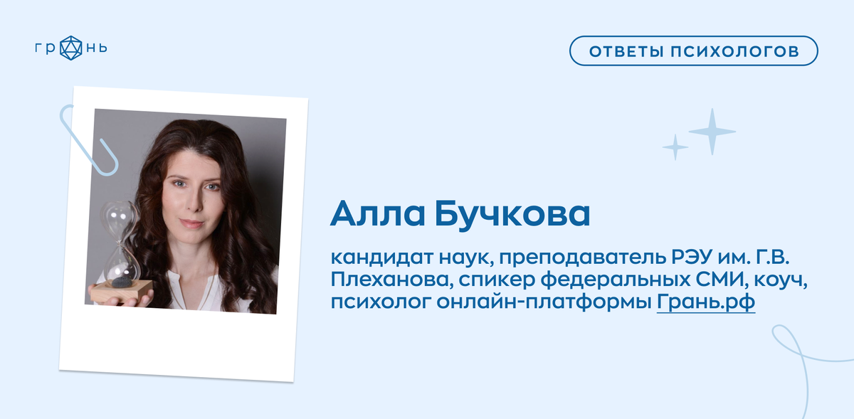 «Часто родные говорят, что я полная и мне надо худеть. Я не знаю, как им объяснить, что мне это не нравится. У меня появились комплексы, и при любом упоминании того, что я не подхожу под стандарты красоты, у меня текут реки слез, и я не знаю, как с этим справиться. Что вы посоветуете?» Ответ Аллы Бучковой, психолога онлайн-платформы Грань.рф: Оптимально действовать в двух направлениях: 1. Работать с ЗАЩИТОЙ СВОИХ ГРАНИЦ. Говорить родным о том, что вам это не нравится. Для этого можно использовать технику «Я-ВЫСКАЗЫВАНИЕ». На первом этапе лучше заранее подготовиться к разговору с теми, кто указывает вам на проблемы с весом. Говорить важно именно о своих чувствах в этой ситуации, без критики и обвинения в адрес собеседников. Все Ты- и Вы-высказывания (например, «Ты постоянно говоришь мне об этом», «У вас совсем нет такта») заменяем на Я-высказывания (например, «Мне неприятно, когда я слышу такие слова в свой адрес»). Четко объясняем, что именно вам не нравится, благодарим за внимание к э