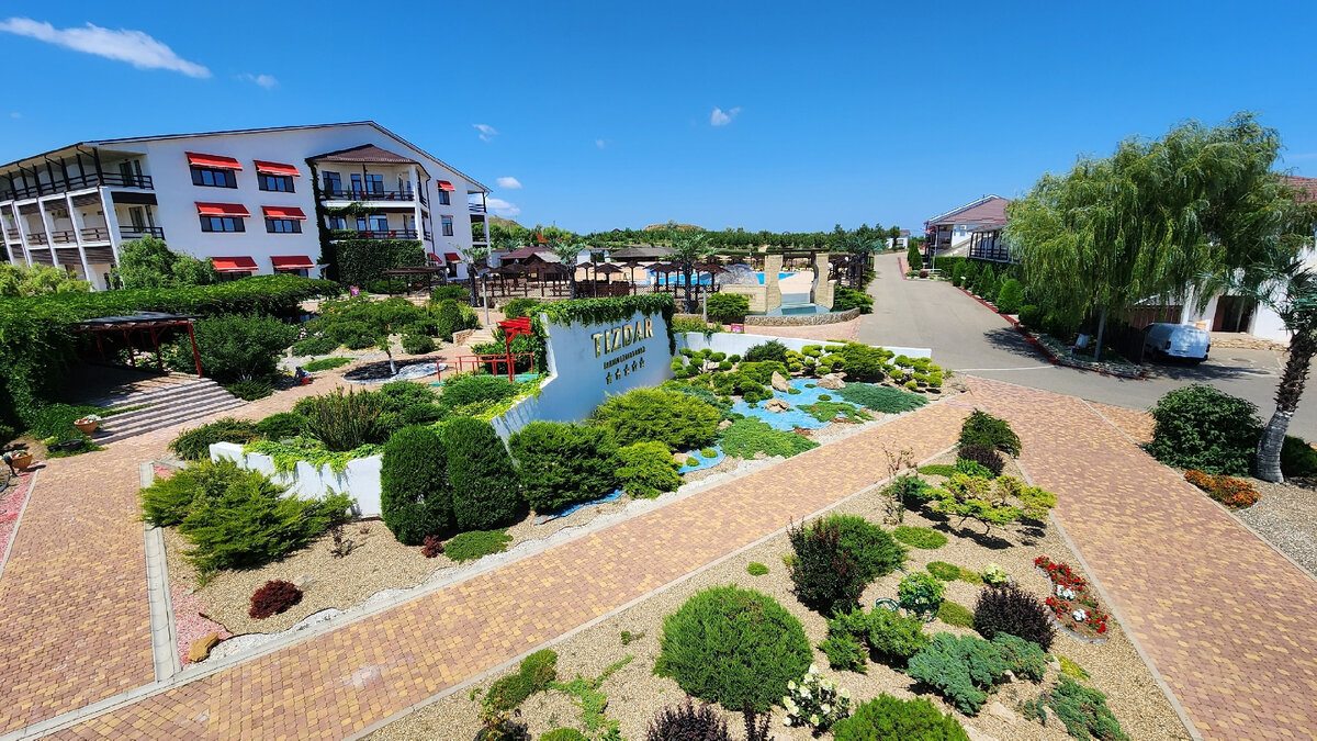 Ну или не меньше точно. Я нахожусь на курорте Tizdar Resort&Spa. Это час езды от Анапы и это Азовское море.