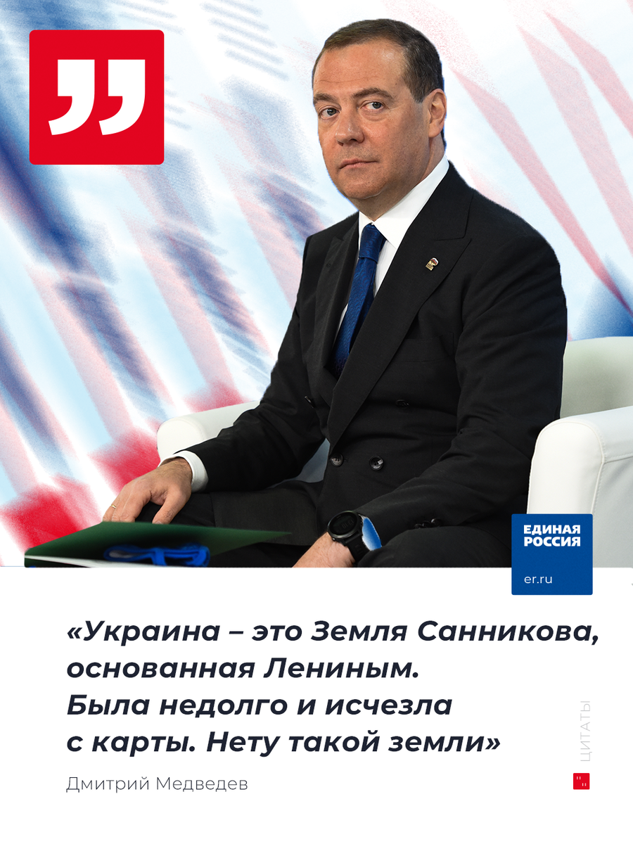 ✅ Председатель Единой России Дмитрий Медведев прокомментировал заявления киевского режима о границах Украины.