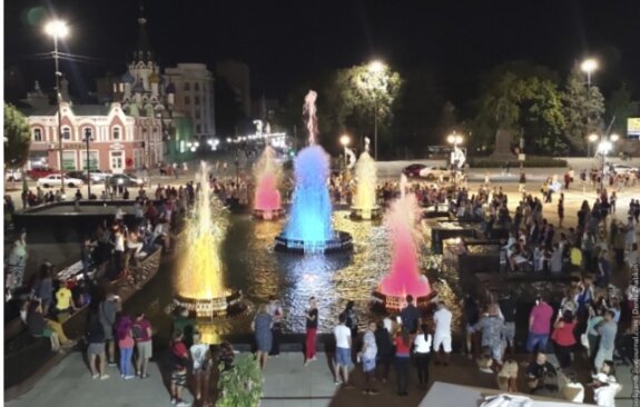 Третье рождение фонтана пришлось на ковидный 2020 год. Событий в городе тогда было не густо, и я отправилась на его открытие. Подсветка была великолепна, но меня очень расстроил плейлист. Фонтан располагается напротив первой в России провинциальной консерватории имени нашего земляка Альфреда Шнитке, на улице, где жил автор всемирно любимой "Калинки-Малинки", в городе, открывшем миру Лидию Русланову. Подсвеченные струи бьют прямо под окнами дома, в котором и по сей день живёт уже старенький, но по-прежнему величайший тенор России Леонид Сметанников. В конце концов, по проспекту Кирова гуляли в разные годы саратовчанки Алена Апина, Валерия, здесь провела детство у бабушки Полина Гагарина.