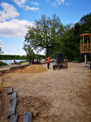 Так, по информации Дирекции, экобрусчатка демонтирована от входной группы со стороны Анкудиновского шоссе до дамбы первого озера, а также со всей прилегающей территории третьего озера. Полностью заменена дорога из экобрусчатки на участке от дамбы второго до третьего озера. На первом озере предстоит заменить экобрусчатку на асфальтовое покрытие с «карманами» для установки лавочек и урн. На первом озере завершаются работы по берегоукреплению. Рабочими сделан так называемый «пирог» из геотекстиля, георешетки и щебня. Сверху всё это будет засыпано слоем чернозема и засеяно травой.