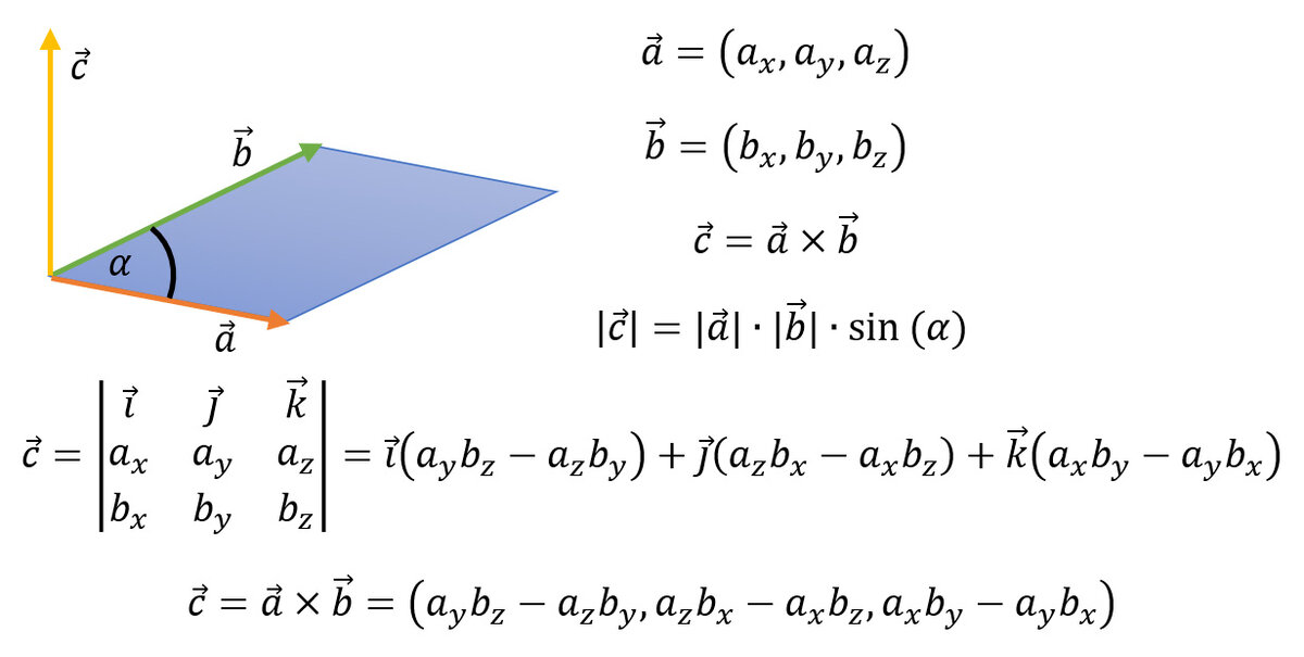 Во-вторых, если скалярное произведение показывает, насколько перемножаемые векторы смотрят в одну сторону, то векторное произведение показывает, насколько направление векторов различно. Это хорошо видно по школьным формулам. Скалярное произведение - это произведение длин векторов на косинус угла между ними. А векторное - на синус.