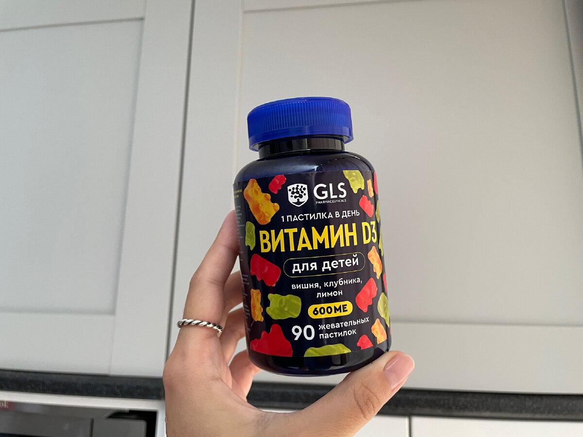 Если вы давно на меня подписаны, то знаете, что я стараюсь много времени уделять здоровью, часто пью витамины. Пришло время и детям снова давать витамин Д (можете даже не писать в комментариях, что лучше бы я их на море каждый день водила да на солнышке гуляла - мы принимаем витамины по назначению врача, даже в нашей солнечной Анапе у большинства людей недостаток витамина Д, лично на себе это проверила по анализам). Взяла новинку от GLS, раньше уже пила несколько разных добавок этой фирмы, поэтому уверена в ней. Заказала сразу большой формат, так как у меня двое детей. Бывает ещё на 30 штук, около 300 рублей. В банке - 90 мармеладных мишек, даю детям по одной штуке в день, а недавно решила, что и сама буду пить, раз остаётся 30 лишних штук 😂 И я вам вот что скажу: Это самые вкусные мармеладные витамишки, которые я когда-либо пробовала 🤩 Честное слово! Сладкие, с кислинкой, и абсолютно безо всякого «больничного» привкуса. Дети бы всю банку за раз съели, если бы им позволили 😅🙈 Ко