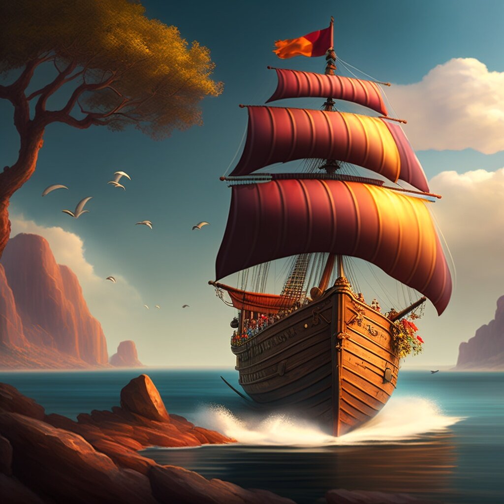 В тот день Елена собирала ракушки, вдруг она увидела красивый корабль, который пришвартовался к берегу: "Может там, у них, есть что-нибудь полезное для монастыря?" - подумала Елена и подошла ближе. Вдруг девушка заметила черный флаг с черепом и перекрещенными костями на мачте судна.