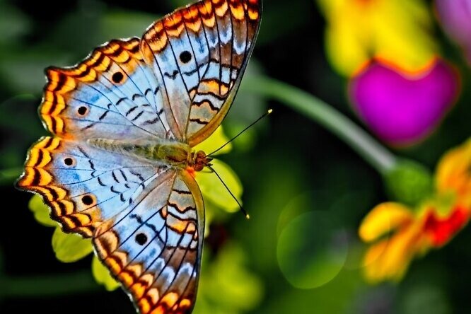 Вот несколько интересных фактов о бабочках: 1. Бабочки являются насекомыми, принадлежащими к отряду Лепидоптера, что в переводе означает «крылатый». 2. Существует более 18000 видов бабочек по всему миру, и они очень разнообразны по форме, цвету и размеру. 3. Бабочки имеют две пары крыльев, покрытых чешуей. Чешуи на их крыльях действуют, как мозаика, чтобы отражать свет и создавать яркие цвета. 4. Бабочки могут детектировать свет в ультрафиолетовом спектре, что позволяет им распознавать цветы, маркировки и других бабочек, которые обычно не видимы для человеческого глаза. 5. Бабочки часто используются как индикаторы экологического состояния среды. Поскольку бабочки чувствительны к изменениям в экосистеме, изменения их численности и видового разнообразия могут указывать на проблемы в окружающей среде. 6. Некоторые виды бабочек мигрируют на длинные расстояния. Например, монархи мигрируют на расстояние около 4 тысяч километров каждую осень, чтобы достичь своих мест зимовки. 7. Бабочки живу