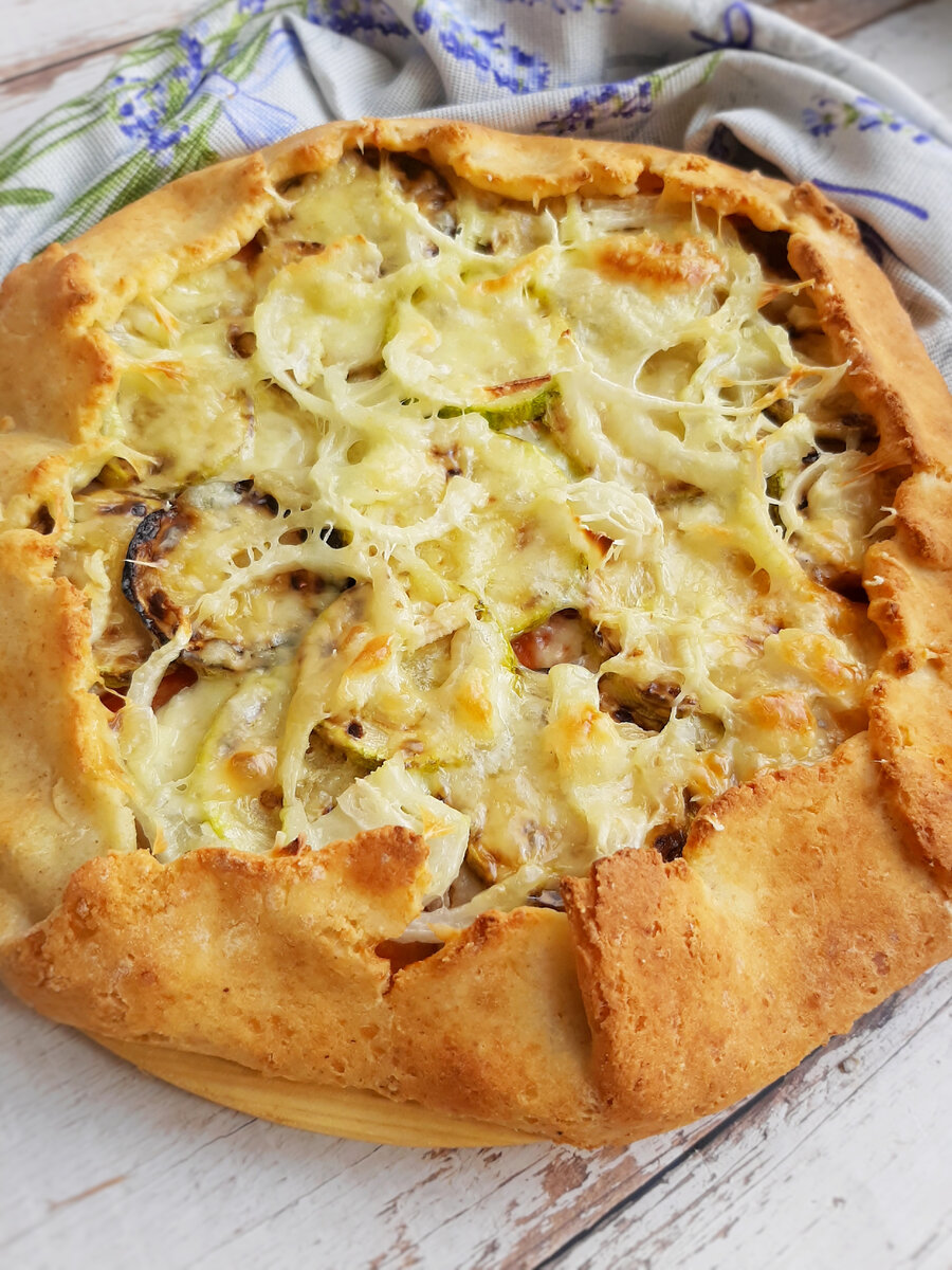 Галета на творожном тесте с кабачками, ветчиной и сыром.