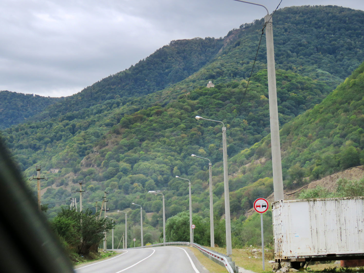 Зато Нижняя Теберда (1,2 тыс. жителей), в 1944-57 годах (когда здесь был Клухорский район Грузии) называвшаяся Мзиса, а с момента основания в 1870-м Сынты, сразу привлекает взгляд маленькой церковью, висящим высоко на лесистой горе. Это Сентинский храм (965), старейший в России из имеющих чёткую датировку и, по мне так, самый эффектный из 5 аланских храмов Карачаево-Черкесии.