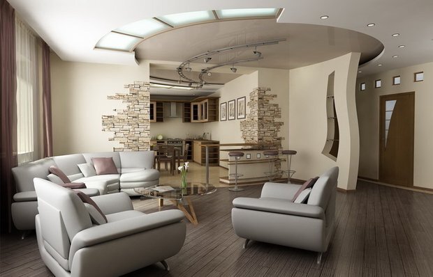 Недавно я как обычно просматривала интерьерные сайты в поисках идей. И заметила вот что: сейчас дизайнеры много внимания уделяют потолку. Интересных идей много, так что я решила сегодняшнюю подборку посвятить вариантам оформления этой зоны! 1. Подвесные и натяжные Честно говоря, тут останавливаться не хочется. Такими потолками никого не удивишь, но включить их в подборку все же надо. Один из его плюсов в том, что можно продумать интересную систему освещения и фигурные изгибы, которые станут декоративным элементом. 2. «Бесшовный» А вот это уже относительно свежий тренд: потолок красится в цвет стен (а некоторые идут еще дальше и красят в один цвет пол, стены и потолок) за счет чего достигается эффект «бесшовности» пространства. Кому-то это нравится, но кто-то считает, что жить в такой комнате – все равно что в яйце. Ну, это дело вкуса. 3. Частично покрашенный Интересный вариант, который создает визуальное зонирование: часть потолка красят в тот же цвет, что и часть стены. Никаких гран