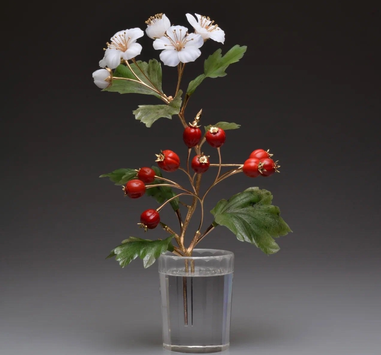 Невероятно красивая и почти настоящая веточка боярышника от российских мастеров камнерезного искусства и ювелиров. Любуемся вместе.