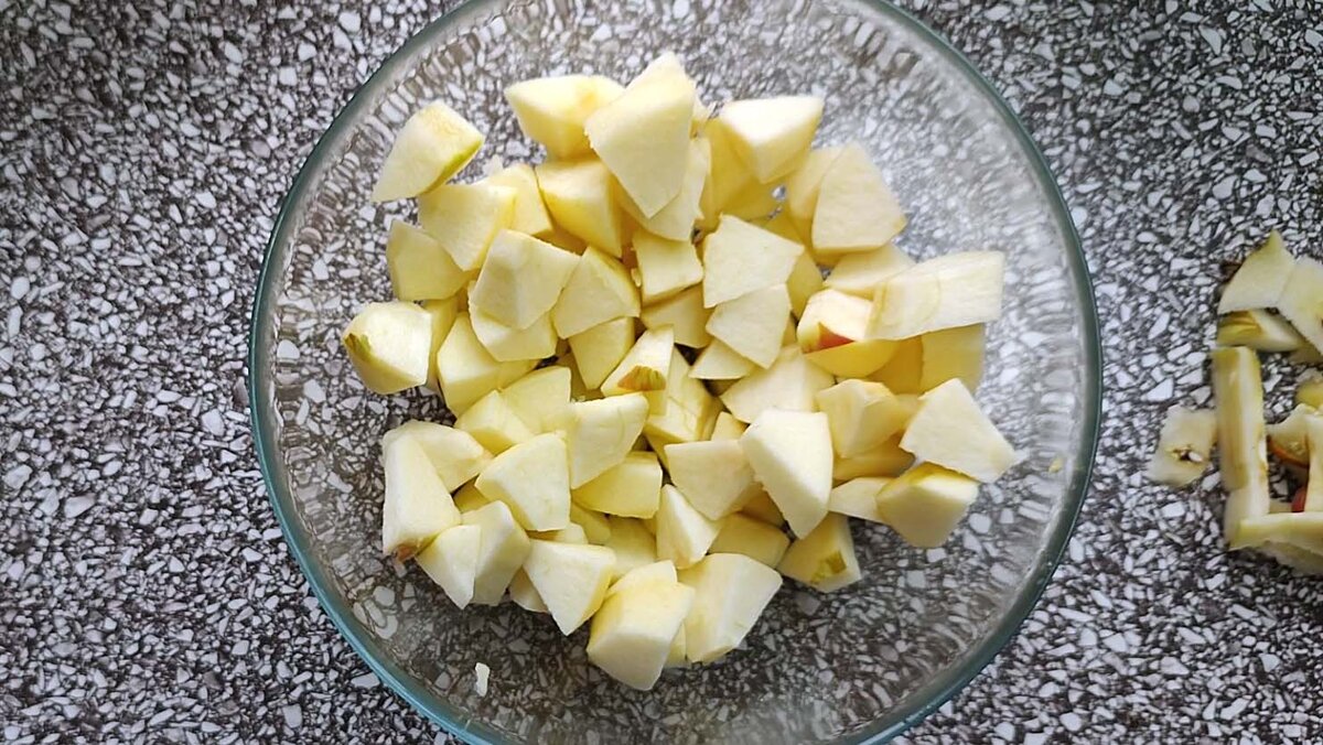 Люблю творожную выпечку. Сегодня опять готовила творожник с яблоками по своему любимому рецепту. Творожник получается очень вкусным несмотря на то, что в нём совсем немного калорий, и поэтому есть его можно без всяких угрызений совести. Список всех ингредиентов и КБЖУ вы найдёте в первом комментарии. Подготовлю все ингредиенты. Для его приготовления я беру 3 крупных яблока и очищаю их от кожуры. Это делать не обязательно и яблоки со своего сада я не чищу, а вот магазинные предпочитаю почистить. Нарезаю яблоки не очень мелкими кусочками, но это дело вкуса. Мне нравится когда яблоки остаются целенькими кусочками, а не превращаются в пюре. Яблоки складываю в миску и сбрызгиваю соком лимона, чтобы не потемнели. В отдельной миске смешиваю 500 гр. творога и 3 яичных желтка (белки пока откладываем в сторону). У меня творог очень сухой, я добавляю йогурт, примерно 3 столовые ложки. Если творог мягкий, то йогурт может не понадобиться. Начинаю смешивать погружным блендером до однородной гладкой