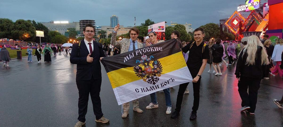 Русские школьники на выпускном с имперскими флагами, скандируют "русские, вперед". И подпевают Шаману с флагами "Вагнера".