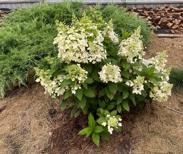 Гортензии метельчатые все активнее завоевывают сердца садоводов и все чаще их можно встретить в наших садах. У меня сейчас растут четырнадцать сортов. Четыре кустика были посажены этой весной. Мои гортензии еще молодые. Свой участок начали осваивать пять лет назад, шестой сезон идет. Самый взрослый куст сорта Пинки Винки был посажен в двадцатом году. Мне больше нравятся сорта с лаймовым окрасом соцветий в начале цветения. Гортензии легко черенкуются. Так везде пишут. Решила тоже попробовать так размножить гортензию. Первый опыт у меня был в прошлом году. Укоренить получилось. Фотография от 20 августа. А это уже черенки через месяц. 17 августа. Вот такая корневая система наросла. Но потом черенки начали погибать. Мне теперь видеться, что влажности им не хватало. Стояли в доме. Остались живые всего два растения. На зиму вкопала горшок Р9 в землю, накрыв колпаком из пятилитровой баклажки. Весной выжил один черенок. Сейчас он выглядит уже так. Читатели просили рассказать о черенкован