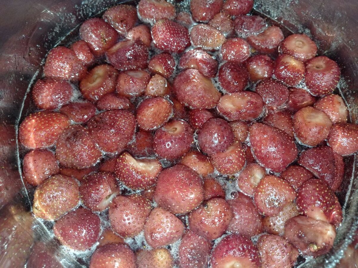 Добрый день! Сегодня "ополезненное" варенье. Я имею ввиду, что используется пропорция не 1:1, а 2:1, то есть чгод в 2 раза больше сахара Можно использовать любые ягоды, но сегодня - клубника. Ингредиенты: Клубника 1кг Сахарный песок 500г Пектин 1 пакетик Поехали! Приготовление: Шаг 1: Клубнику помыть, дать воде стечь. Шаг 2: В большую кастрюлю высыпать сахарный песок, добавить 100мл воды и пектин. Все перемешивая довести до кипения. Добавить клубнику. Шаг 3: Медленно помешивая довести до кипения и варить 5 мин. Шаг 4: В горячем виде разлить по банкам. Банку сразу закрыть крышкой и перевернуть. Шаг 5: Всё накрыть и оставить до остывания. Угощаемся! Надеюсь, что вам понравится!