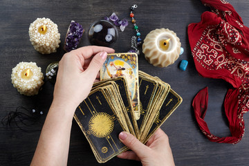 Мешаю карты, думая о работе, представляя само помещение, работающих коллег, начальника и замов, погружаясь в атмосферу, проговаривая свой запрос. Подсняв колоду(левой рукой в свою сторону - спрашиваю я о себе), задаю по очереди вопросы, соответствующие позициям.