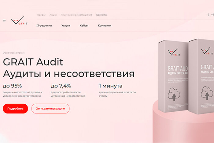 GRAIT – это онлайн сервисы для автоматизации процессов бизнеса. На сайте подробно визуализировали всю информацию про GRAIT Audit (сервис для автоматизации аудитов и систем управления несоответствиями).