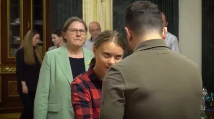 «Мировой эксперт по экологии» (я сейчас иронизирую) Грета Тумберг приехала в Киев. Шведская активистка оценивает ущерб разрушения Каховской ГЭС, обвиняет Россию, называет это «экоцид» (видимо, геноцид в сфере экологии), обвиняет в подрыве Каховской ГЭС. Подсчитывает ущерб, который разрушение нанесло окружающей среде. Больше, видимо, не с кем обсуждать проблему. Сергей Михее: Да, девочка с трудом закончила школу. Ясно, что это такой политический шоу-бизнес. Она имеет какую-то популярность. Хотя ее популярность серьезно снизилась за последнее время, но кто-то на нее ориентируется. До недавнего времени она была достаточно раскрученной фигурой по теме экологии. С ней серьезные мужчины и женщины встречались, как дураки рядом с ней сидели, делали вид, что им это интересно и важно. Чисто шоу-бизнес. «Давайте её используем на украинском направлении. По украинской теме её ещё никто не использовал». С ней приехали ещё две непонятные сопровождающие женщины, и давайте они тоже скажут, какая Россия