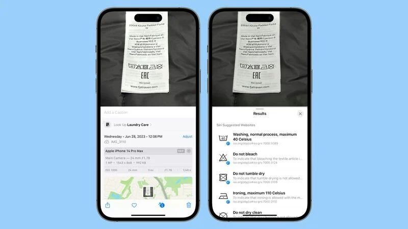 Приложение iOS 17 Photos от Apple теперь переводит символы стирки В приложении «Фото» для iOS 17 от Apple появилась функция, позволяющая определять и объяснять значение различных символов, в том числе символов стирки, встречающихся на бирках одежды. Если сфотографировать бирку, то функция Visual Lookup приложения сразу же начнет интерпретировать эти знаки. При фотографировании бирки каждый символ подсвечивается, и простое нажатие на него дает перевод того, что он означает. Еще одно нажатие на пояснение приведет пользователя на исходный веб-сайт, так как Apple получает эту информацию из Online Browsing Platform, управляемой Международной организацией по стандартизации. Во время тестирования Visual Lookup продемонстрировал способность понимать все представленные символы стирки, включая температуру стиральной машины, советы по отбеливанию, ограничения по сушке, температуру глажки и многое другое. Но символы стирки – не единственное новое дополнение к Visual Lookup. Последнее обновление пр