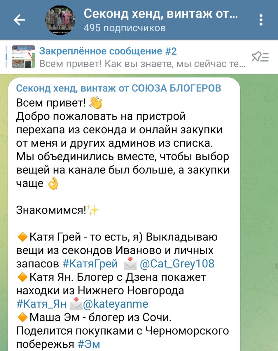- Приглашаю всех в наш групповой чат, где мы обсуждаем все, что связано с секондами - находки, бренды, перепродажу и тд.