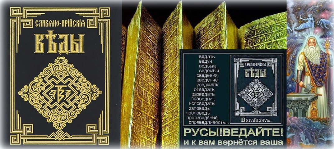 В узком смысле под Ведами подразумеваются только “Сантии Веды Перуна” (Книги Знаний или Книги Мудрости Перуна), состоящие из девяти книг, продиктованных нашим первопредком, богом Перуном, нашим далеким предкам при своем третьем прилете на Землю на летательном аппарате Вайтмане в 38 004 г. до н. э. (или 40 009 лет тому назад). На сегодняшний день переведена на русский язык и опубликована только первая книга этих Вед.