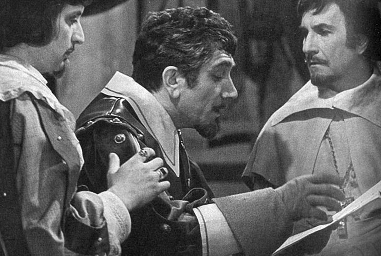 В 1971 году для Центрального телевидения был снят фильм-спектакль под названием "20 лет спустя". Фильм был снят к столетию французского писателя Александра Дюма. Те, кто читали книги про похождения бравого гасконца и его товарищей, поняли, что это экранизация произведения, где присутствует Виконт де Бражелон. В этом фильме-спектакле интересен актерский состав, который, отчасти, будет пересекаться с фильмом, который чуть позднее снимет режиссер Георгий Юнгвальд-Хилькевич. Но, к сожалению Этот фильм-спектакль не сохранился. В Интернете есть лишь фотографии и отдельные кадры, по которым можно сделать некоторое представление об этом спектакле. Д'Артаньян Эту роль сыграл Армен Джигарханян. Можно сказать, что эта роль хорошо подошла знаменитому актеру армянских кровей. Д'Артаньян уже не юнец, а зрелый мужчина. И также не забываем, кто такие гасконцы во Франции. Атос Эту роль сыграл Олег Стриженов. Если сравнивать внешний вид с книжным персонажем, то получилось неплохо. Олег Стриженов бо